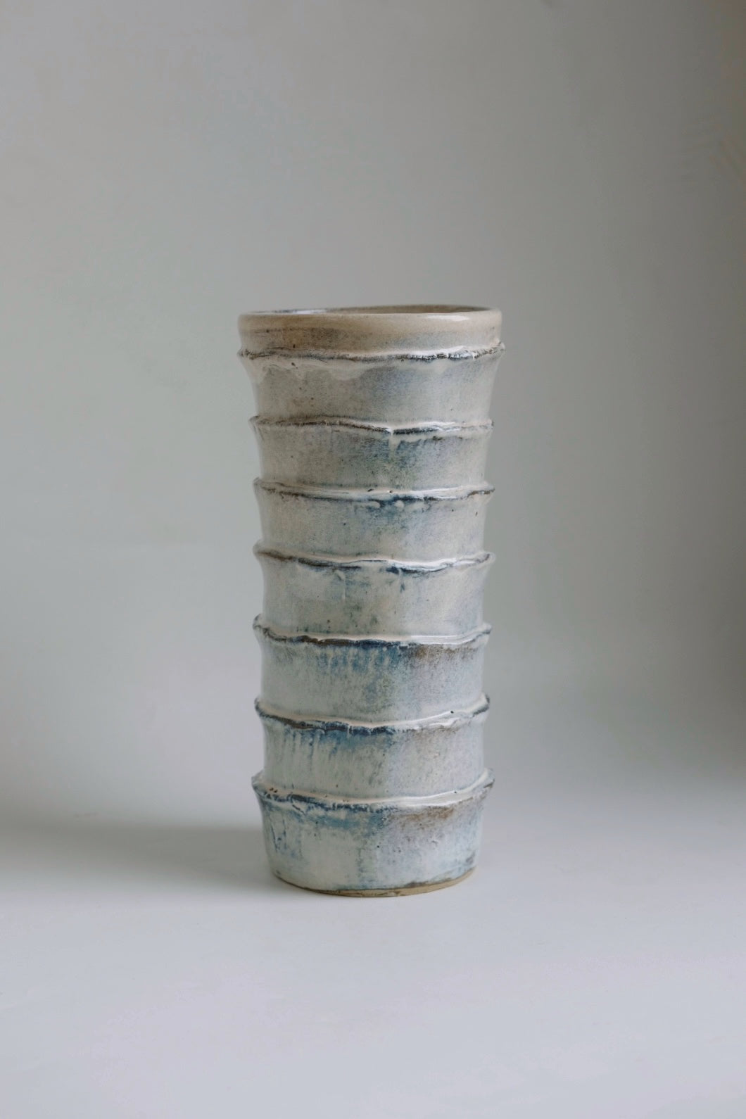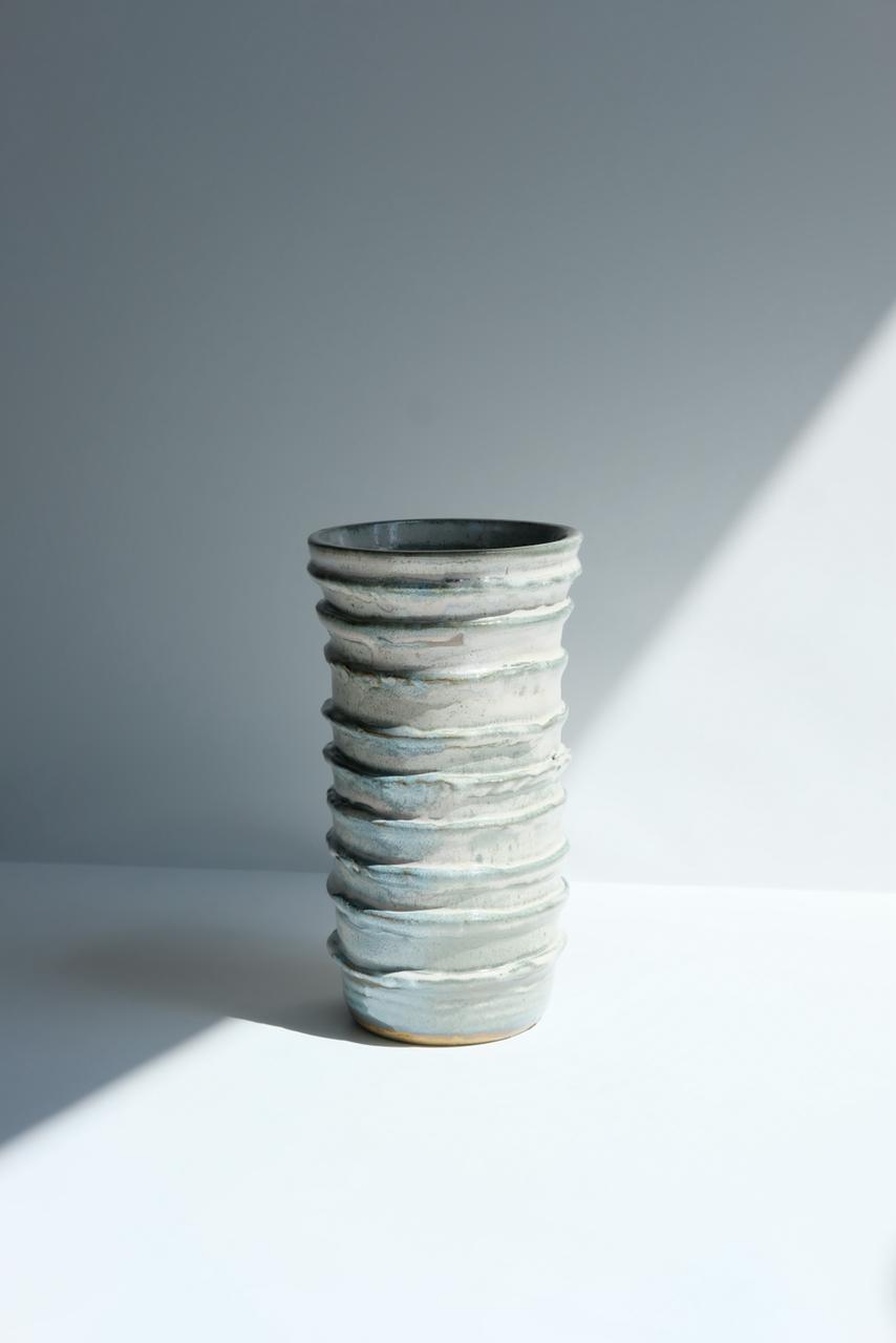 Titanium glaze has got to be the most exciting glaze in our studio. Depending on the atmospheric environment at firing, their result could be ranging from deep purple to dark blue to greenish white to the most stark one: speckled brown. Definitely it is the most fluctuated glaze we're working with and the most fun! we are always looking forward to a kiln opening when a titanium glaze is involved. The pieces made by our studio is always either hand thrown or hand-built, fired to cone 6-8. All glazed are food, oven and dishwasher safe.