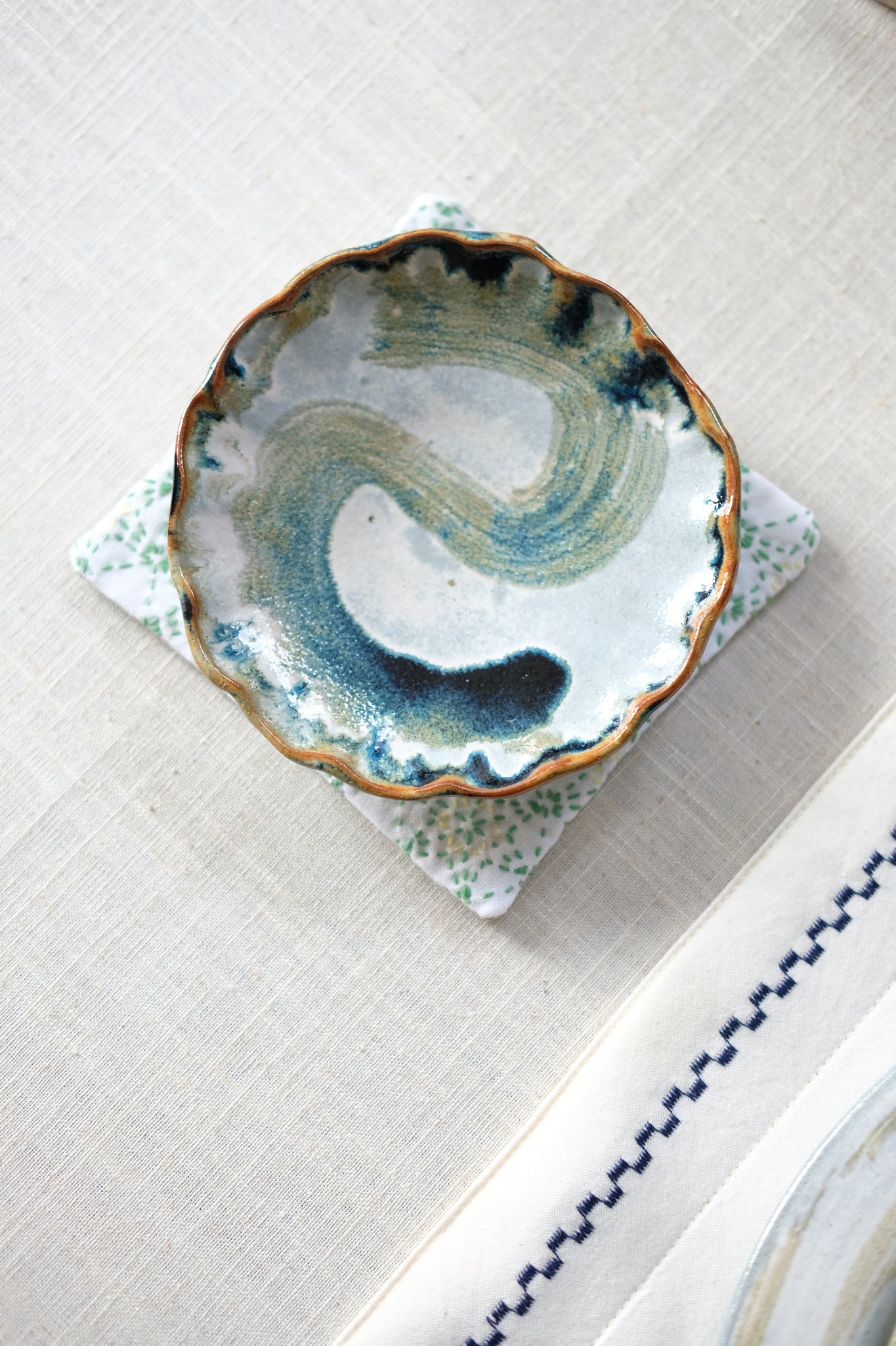 All pieces are handmade individually thrown and trimmed on a pottery wheel. They are glazed with dipping method in our custom studio glaze and fired to 1240 degree Celsius. All pieces use high fire stonewares and are safe to be used for eating, drinking and placed inside a cooking oven. Please hand-wash your handmade pottery but on some occasions you may also use dishwasher. The use of microwave is not advisable.