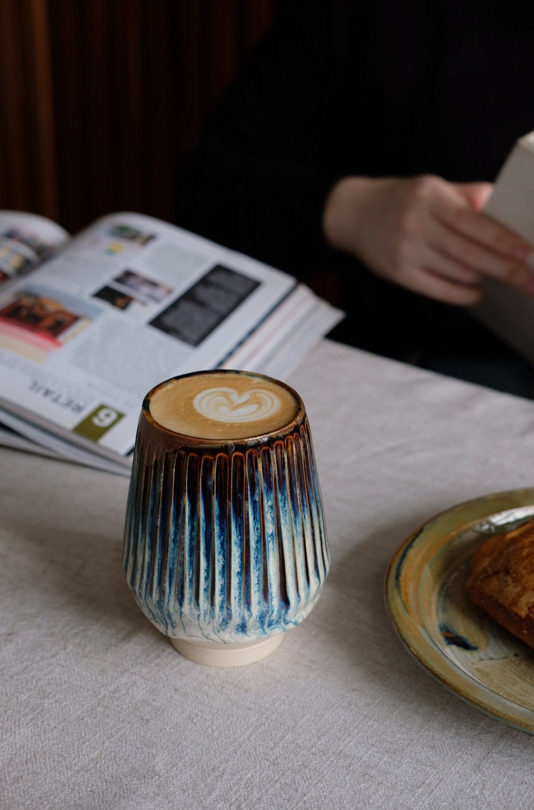 Yunomi cup is one of our best-selling products. This carved cup is hand-thrown and hand-carved with love, capacious for your daily intake of hydration.
