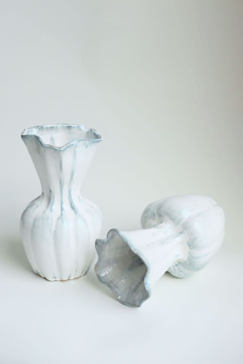 Titanium glaze has got to be the most exciting glaze in our studio. Depending on the atmospheric environment at firing, their result could be ranging from deep purple to dark blue to greenish white to the most stark one: speckled brown. Definitely it is the most fluctuated glaze we're working with and the most fun! we are always looking forward to a kiln opening when a titanium glaze is involved. The pieces made by our studio is always either hand thrown or hand-built, fired to cone 6-8. All glazed are food, oven and dishwasher safe.